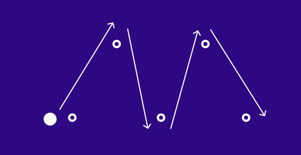 Test 1: Have players slalom through the cones (run as directed in the image above) as quickly as possible. Feel free to have them do it three separate times and take the best time. We’ll call the result of this test, T1.